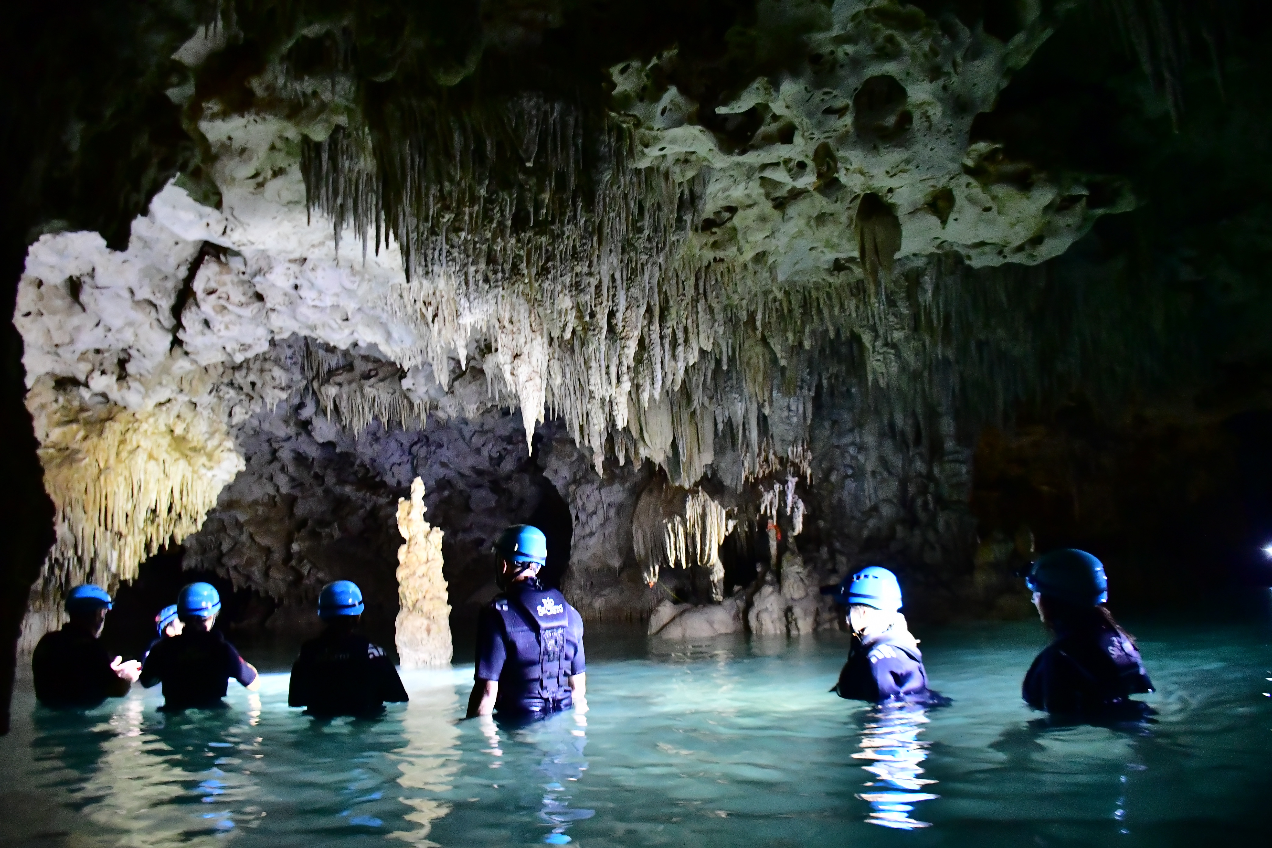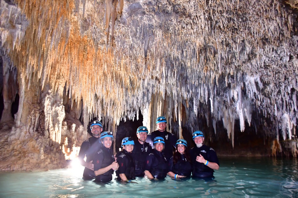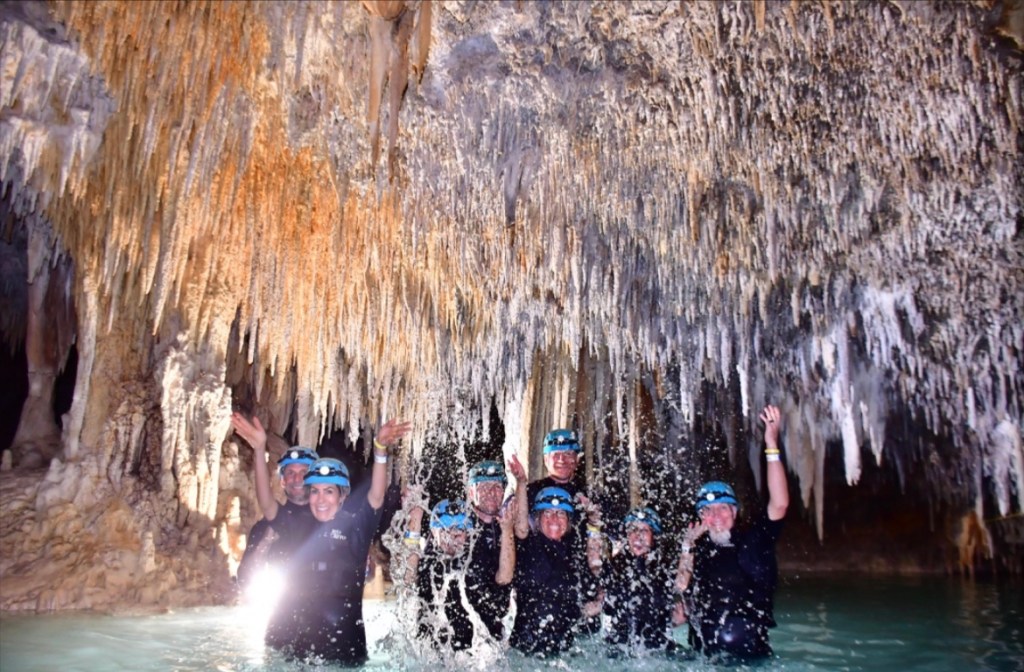 Our guide was really good, she was very informative and put up with our group, which can be a lot. lol. At one point we wanted to know just how dark the cave really was so she let us turn off all our lamps, and boy was that was eerie, I mean it was pitch black and it really made me realize how crazy this was, like what if for some reason we got stuck down there and had no lights? I don’t think I could of found my way out! Not only was it dark but there are things to bump into at every turn. Even when we were deep in the water I managed to bang my leg on a formation that was coming up from the ground, and we all bumped our heads at least once I think ducking and going through the tiny openings. I really enjoyed this excursion even though If I thought about it too long I realized how much danger we could be in if for some reason this thing caved in! Apparently there are no earthquakes in Mexico but the ground has been known to sink in there, I mean where do you think those Cenotes came from?