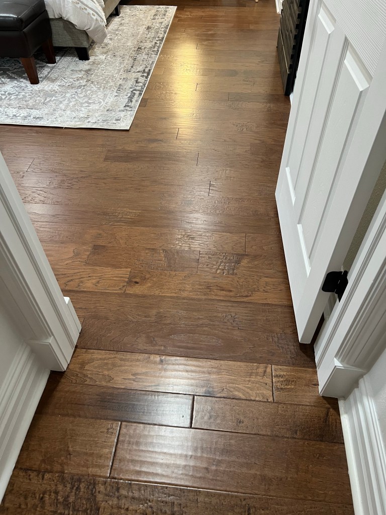 Here is a picture of the original flooring in the hallway where it meets with the new flooring in the bedroom. You can tell it’s different but not enough to let it bother me 🙂