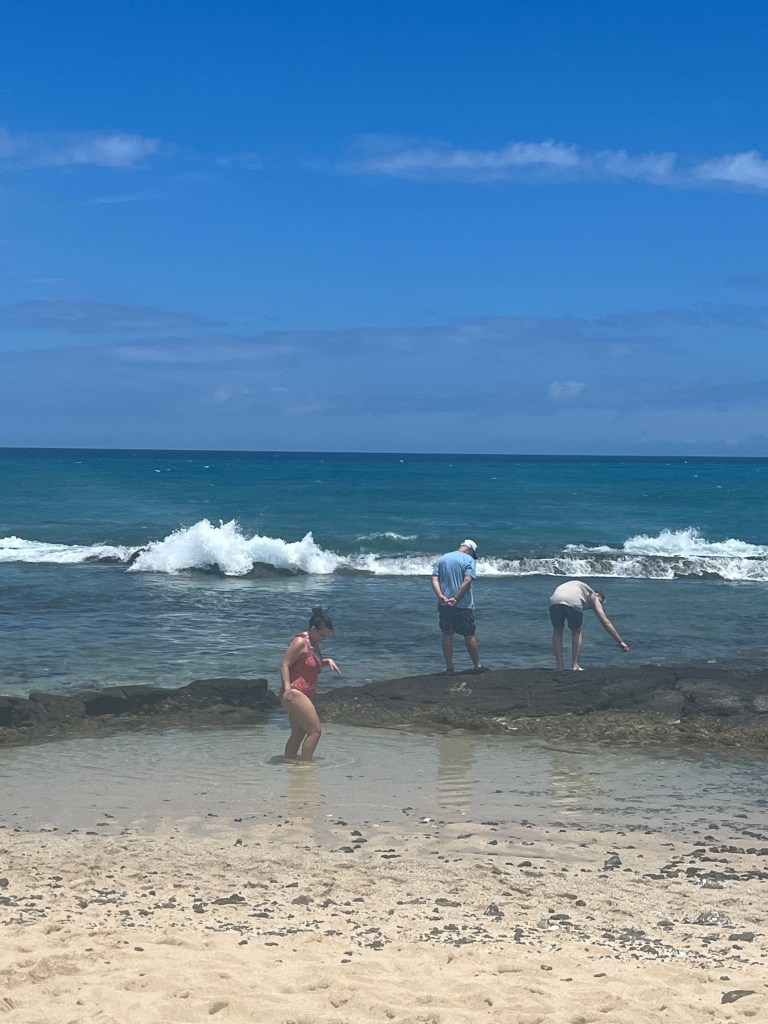 Of course when we got to the beach park it was closed!( we later found out it was because of Hurricane Darby) We were a little bummed but decided to check out The Four Seasons Beach instead. This was a nice beautiful beach. I liked that it had way more sand and beach front and it was less crowded. I could go to the beach everyday, it’s just so soothing! This beach was big enough for the boys to play catch and we found a cute little sea turtle right near the shore.