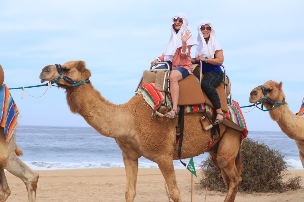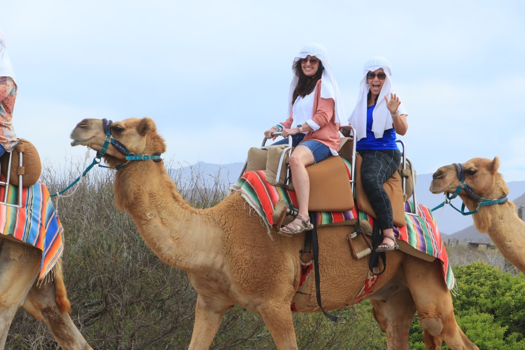 They had us put all of our belongings in a big box no cell phones or cameras allowed, but they assured us they would have drones and people out taking pictures, uh oh how much is this gonna cost us? When we got back we collected all of our belongings and they took us on a little nature hike and told us all about the different plants and cacti. Once we were done with that we arrived at the food and the pictures. They had us take a look at the pictures and settle up if we wanted then come out for a real authentic Mexican lunch. Well after the initial shock of how much they wanted for these pictures and video and getting over how big I looked even compared to a massive animal ( way to much carnival melting cake and ice cream cones!)we decided we would regret not having Evidence that we did indeed ride a camel! So we bought them! Now I can officially check off Riding a Camel off the bucket list!